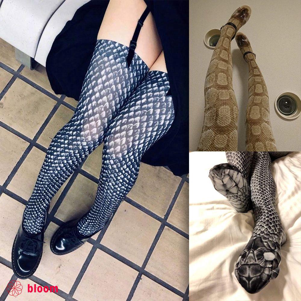 Women Leggings Cobra Python Snakeskin Printed Thigh Stocking High Sock