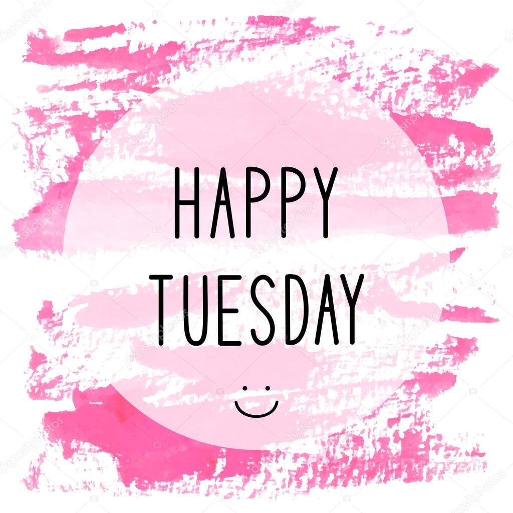Happy Tuesday Text On Pink Watercolor Background Stock