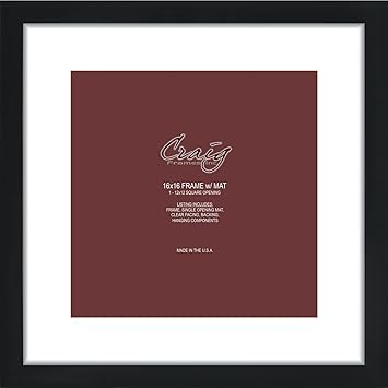 Craig Frames 16 By 16 Inch Black Picture Frame Single White Mat With 1 12 By 12 Inch Square Opening