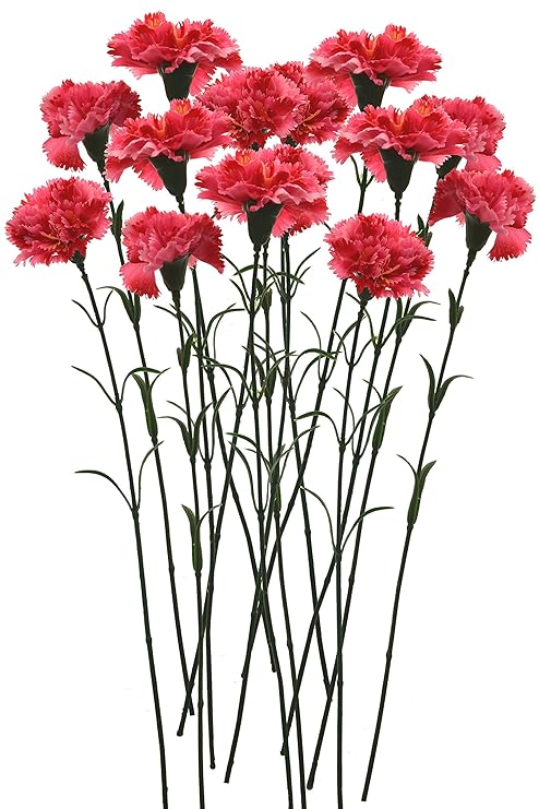 Fourwalls Artificial Synthetic Single Carnation Flower Stick 45 Cm Tall Set Of 15 Dark Pink
