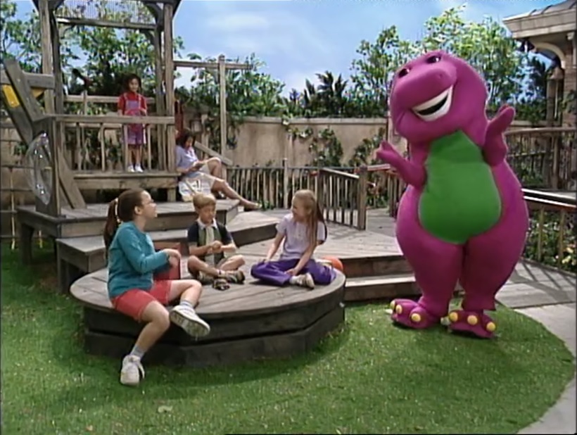 This category is for images of barney. His theme song is barney is a dinosaur whose tune is based on yankee doodle. Picture this is the ninth episode from the second season of barney friends.