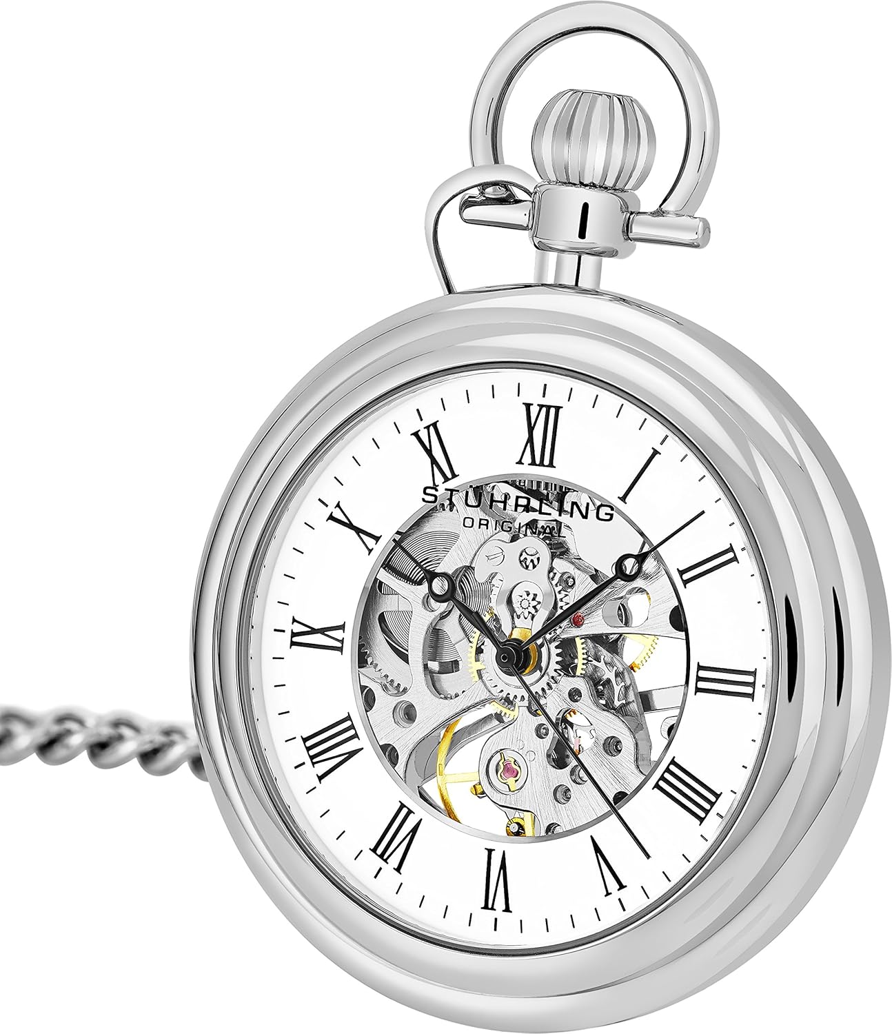 Akribos Xxiv Men S Antique Mechanical Skeleton Chain Pocket Watch