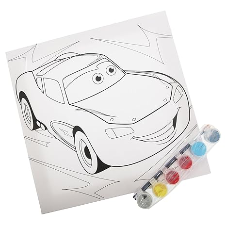 Disney Cars Childrens Kids Official Paint Your Own Canvas Art Set 29cm X 29cm White Black
