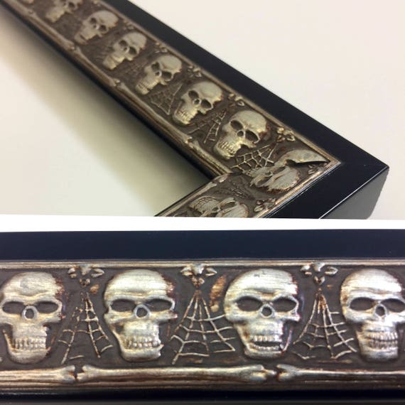 Skull Picture Frame Skull Black 3x5 4x6 5x7 8x10 11x14 16x20 Custom Sizes Black Skull Frame Black Skulls Skull Gift Frame Skull