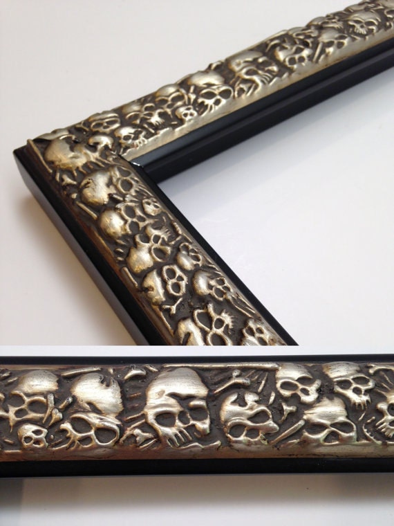 Skull Picture Frame Silver Picture Frame 3x5 4x6 5x7 8x10 11x14 16x20 18x24 Custom Sizes Silver Skulls Skull Gift Skull Frame