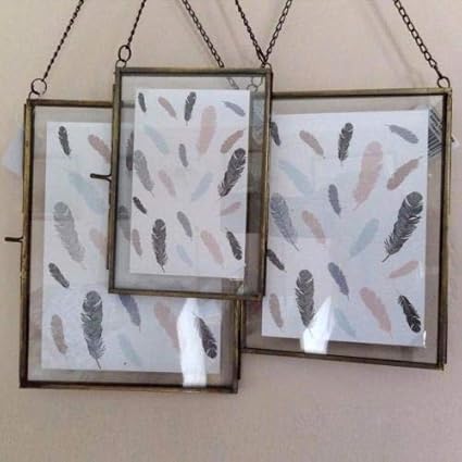 Fidgetfidget Hanging Floating Picture Photo Frame Portrait Chain Brass Glass 6 X 8 Inch