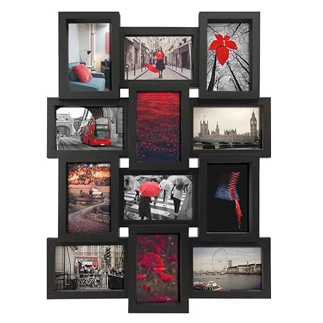 Petaflop 4x6 Picture Frames Collage 12 Openings Black Multi Frame 4 X 6 Wall Mounted Vertically Or Horizontally