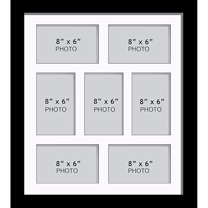 Large Multi Picture Photo Aperture Frame 8 X 6 Size With 7 Openings In White Mount Choices Of Frames