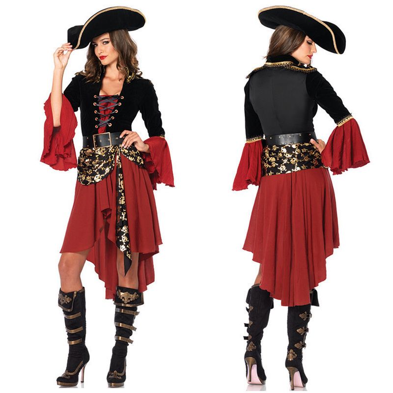 Deluxe Gothic Female Pirate Costume Pirates Of The Caribbean Female Captain Cosplay Fantasia Fancy Costume