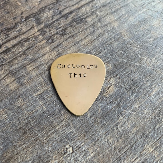 Custom Hand Stamped Brass Guitar Pick Pick Your Own Phrase And Font