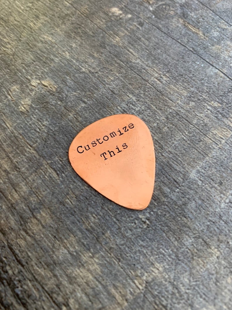 Custom Hand Stamped Copper Guitar Pick Pick Your Own Phrase And Font