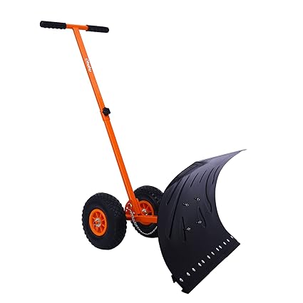Ohuhu Adjustable Wheeled Snow Shovel Pusher Rolling Snow Plow Shovels Snow Removal Tool