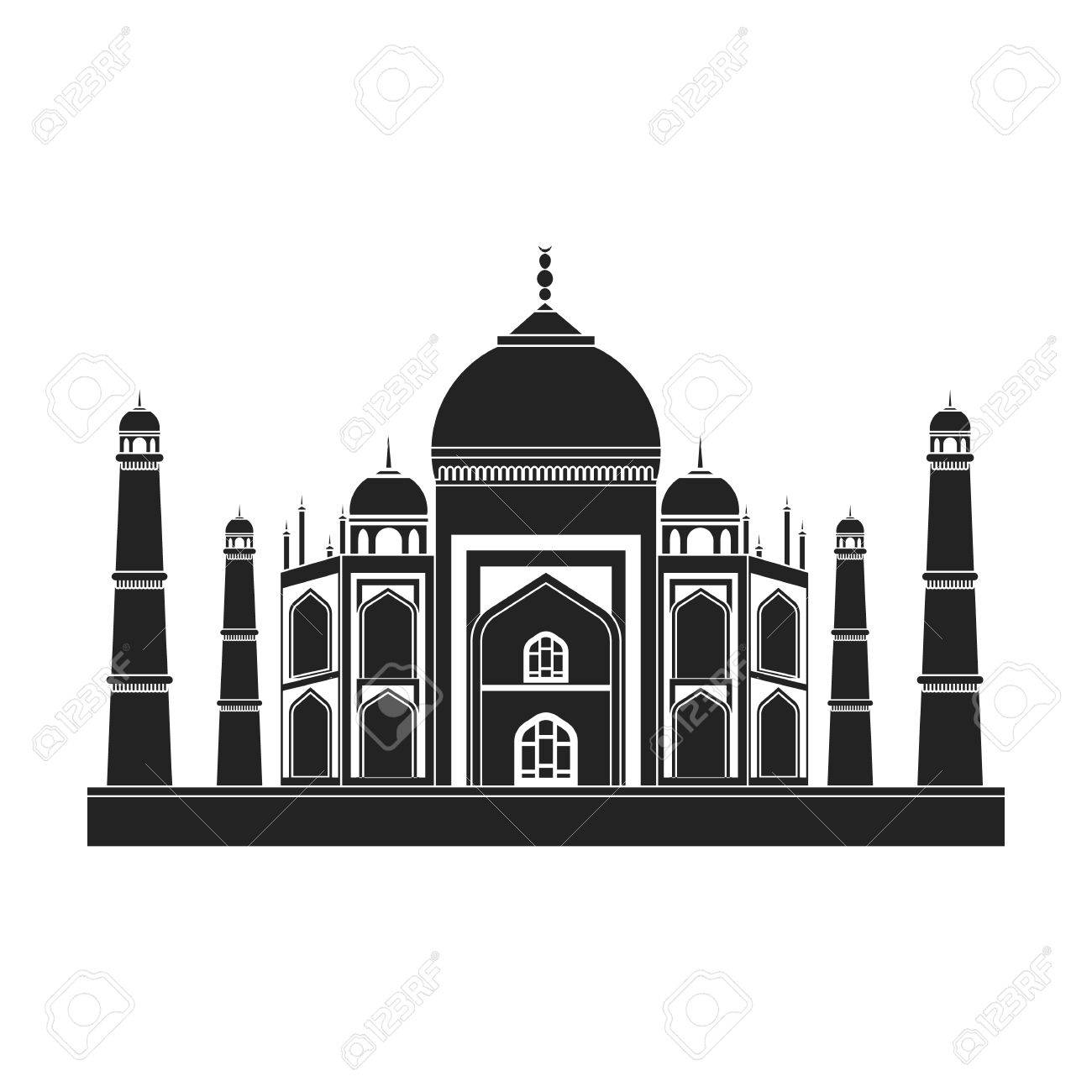 Taj Mahal Icon In Black Style Isolated On White Background India